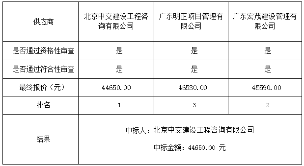 1:中標(biāo)供應(yīng)商名稱北京中交建設(shè)工程咨詢有限公司 法人代表 陳榮輝 地址北京市朝陽(yáng)區(qū)北苑路170號(hào)凱旋城3號(hào)樓4層0501