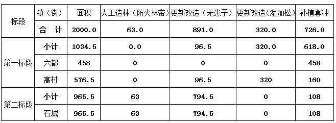 (二)、采購文件第二章 用戶需求書P7中“四、云安區2020年森林碳匯重點生態工程項目要求--(四)建設工程量”